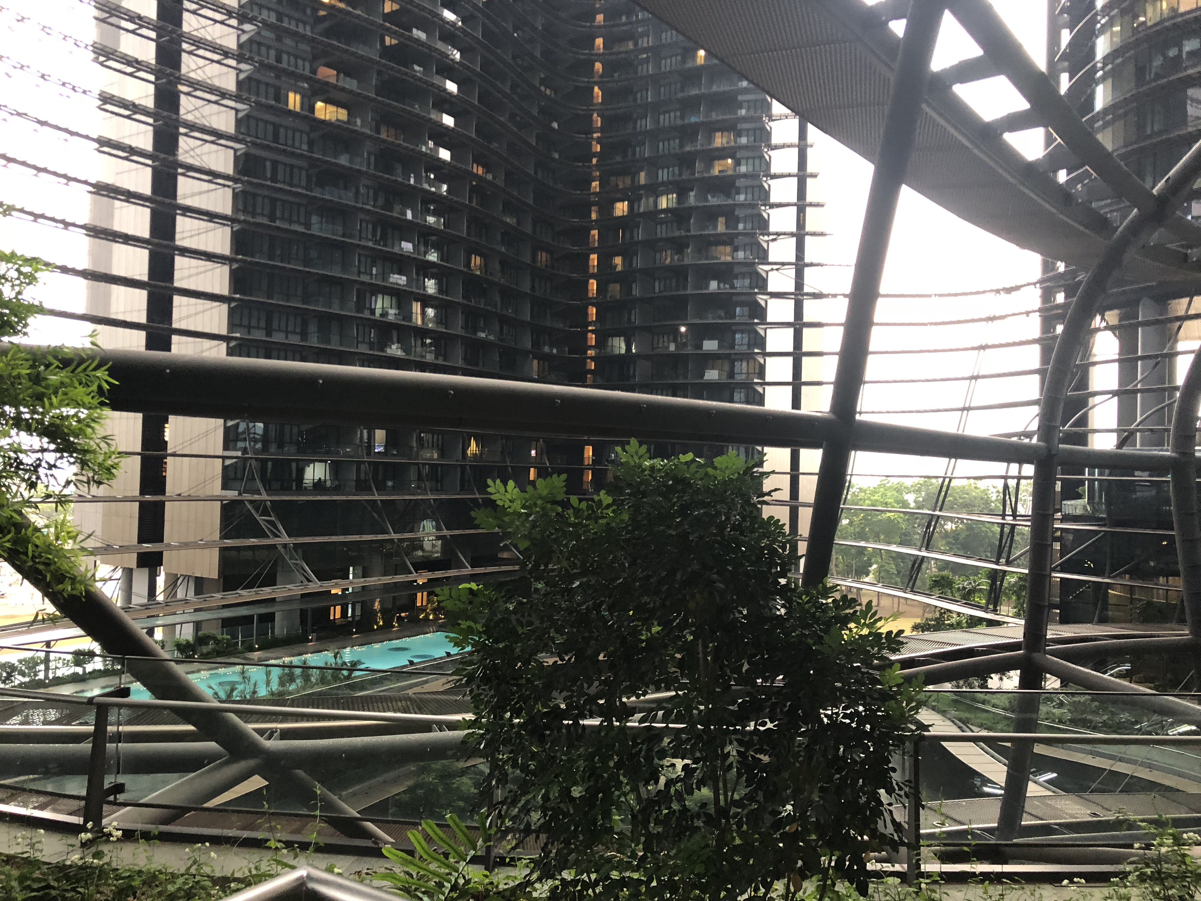 I visited marina one once out of interest. First of all, in order to achieve the dynamic style of the building elevation, the curved frame on the low level has limited the visual field, resulting in no completely atrium view available on the five-story commercial area which is at the bottom of the building. Secondly, the internal space is surrounded by four high-rise buildings and most of the natural light is blocked. Although the atrium increased some lighting and ventilation, the building still felt dim and depress. Finally, the regional location of the marina one and public transportation are not as convenient as in the publicity. The land in front of the marina one is still a wasteland. The subway station is close but there are not many subway routes and it is not an important stop.