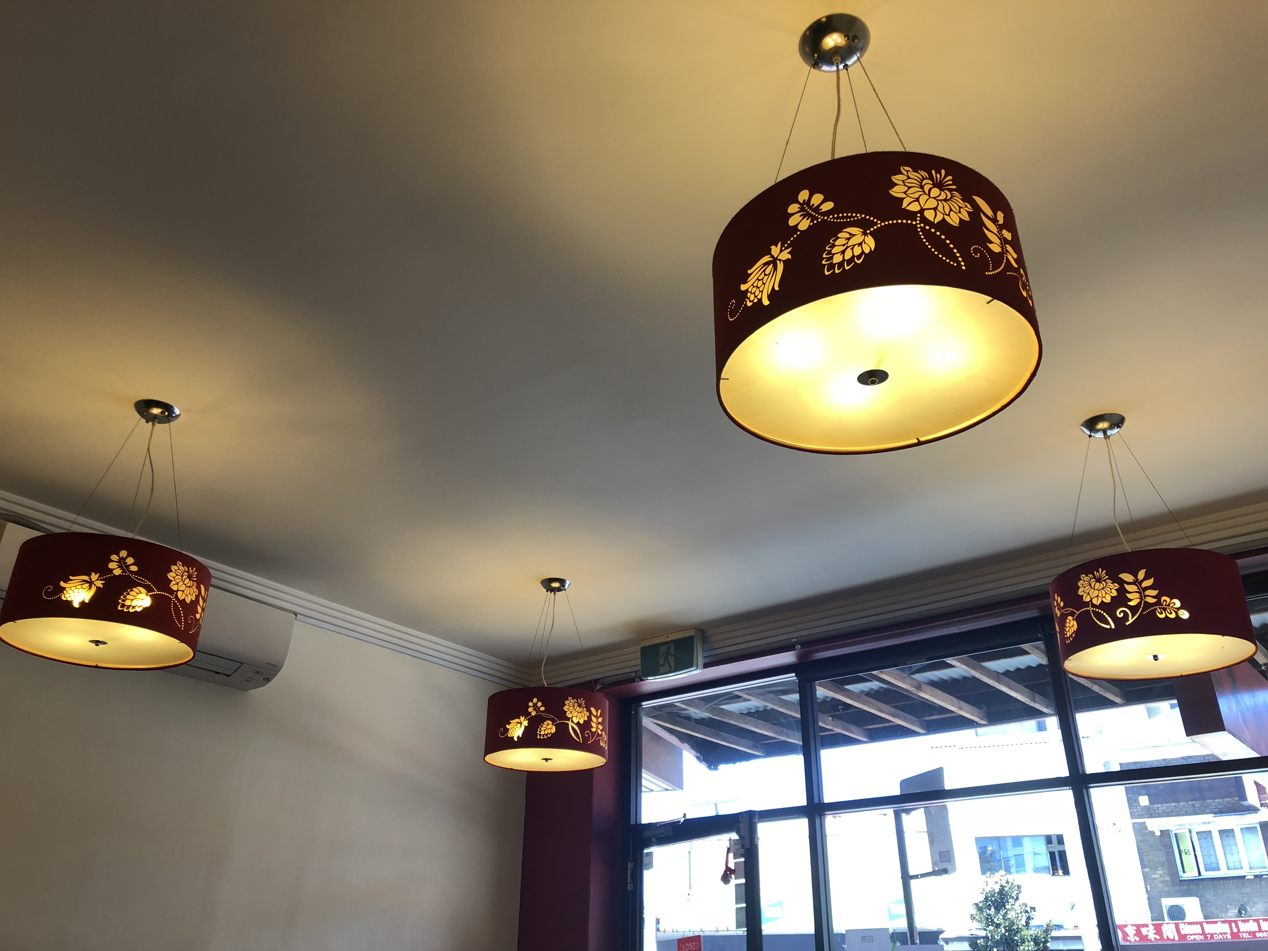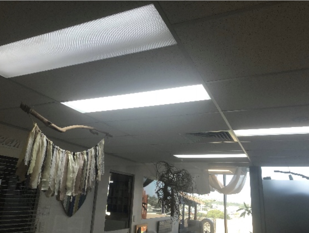 This picture was taken in a restaurant, as we can see from the figure, the lighting is left open while is in the day time. It is 1 o’clock in the afternoon, it is the time when the sunlight is sufficient, but the room still turns all the lights on, which causing a serious waste of energy.